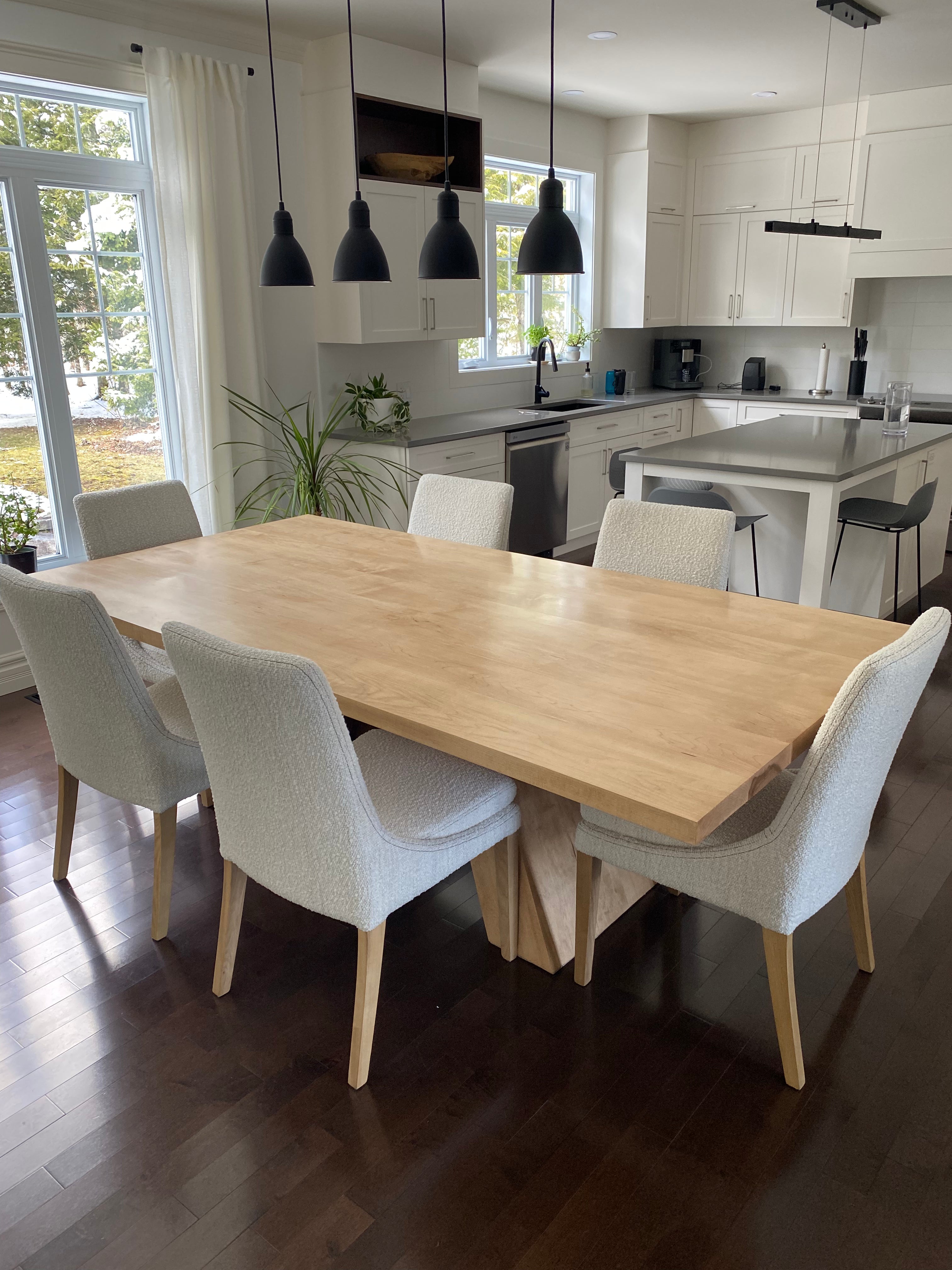 Nous sélectionnons méticuleusement chaque pièce de bois pour chaque projet. Tout le bois est séché au four afin de garantir un taux d'humidité optimal, entre 7 et 9 %. Nous proposons plusieurs essences de bois massif, telles que l’érable, le frêne, le chêne, le noyer et plus encore.