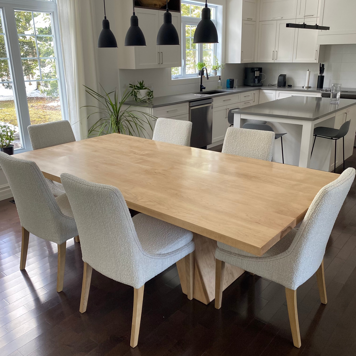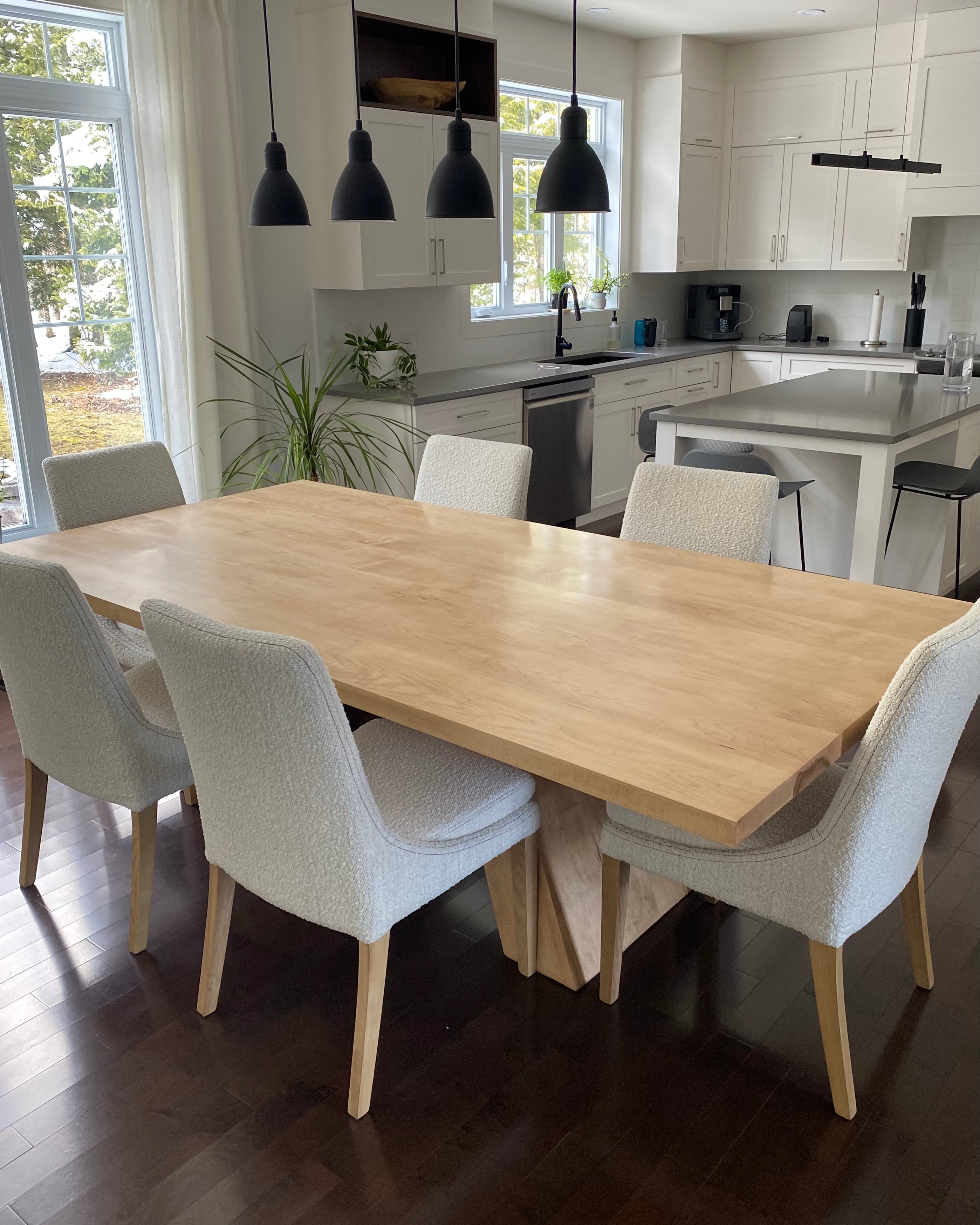 Nous sélectionnons méticuleusement chaque pièce de bois pour chaque projet. Tout le bois est séché au four afin de garantir un taux d'humidité optimal, entre 7 et 9 %. Nous proposons plusieurs essences de bois massif, telles que l’érable, le frêne, le chêne, le noyer et plus encore.